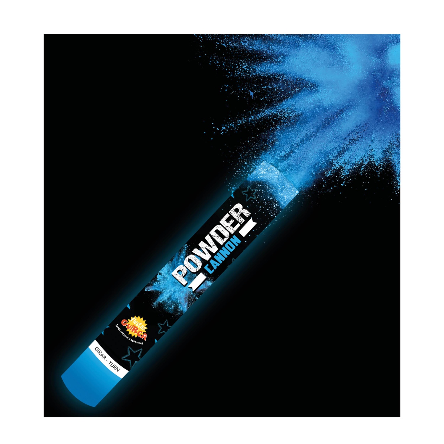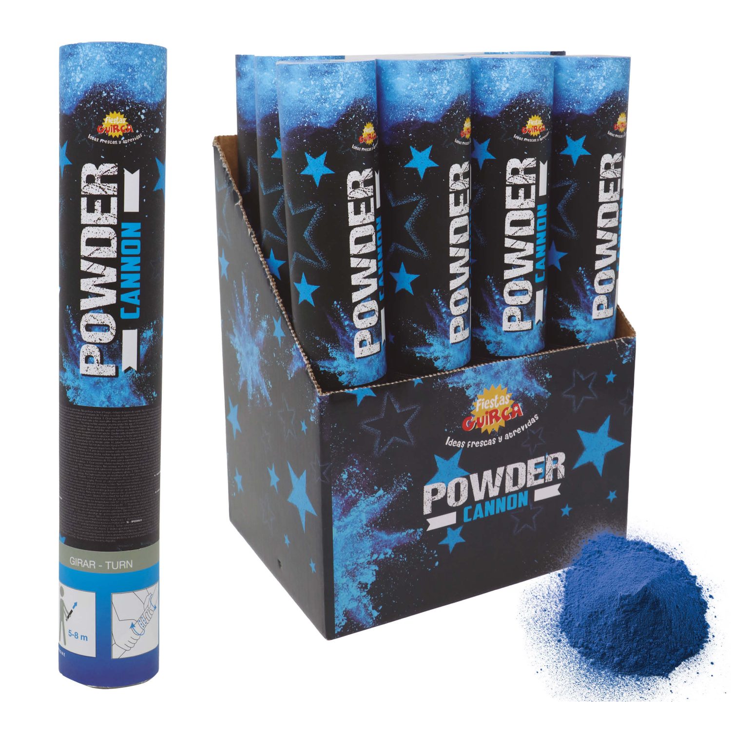 Práškové dělo o délce 30 cm naplněné 30 g modrého prášku je výrazný party efekt, který během okamžiku promění běžnou oslavu ve vizuální show. Jednoduchým otočením spodní části vznikne hustý oblak barvy, který skvěle vynikne na fotografiích i videu.