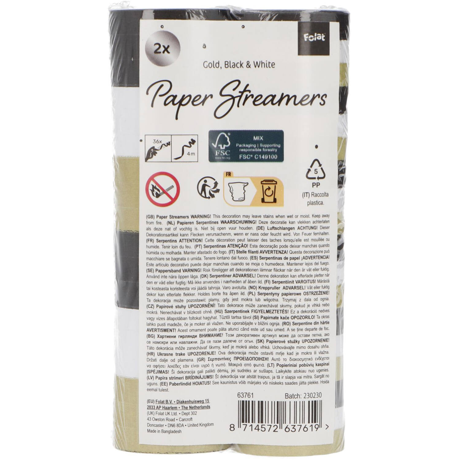 Serpentiny papírové černo-zlaté 4 mm x 4 m – 2 ks