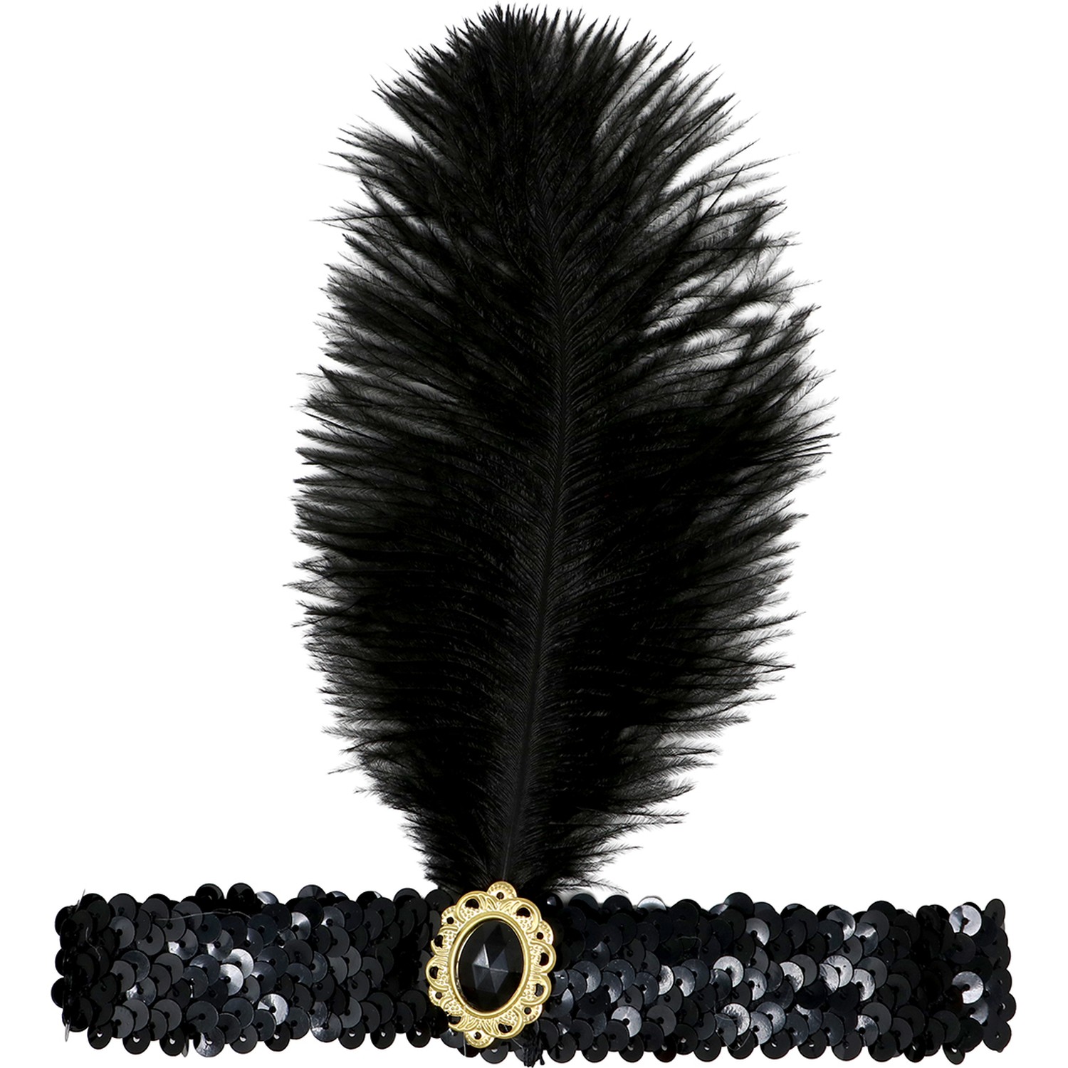 Součástí balení je čelenka s výrazným peřím, dlouhý perlový náhrdelník a stylová špička na cigaretu, která dodá kostýmu šmrnc a noblesu. Skvěle se hodí k černým šatům, třásňovým modelům i dalším charlestonovým kostýmům.