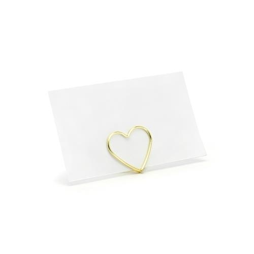 Elegantní stojánek na jmenovky ve tvaru srdce v zářivě zlaté barvě dodá vaší slavnostní tabuli romantický nádech. Ideální na svatbu, křtiny nebo oslavu výročí, kde usnadní organizaci a zároveň ozdobí váš stůl.