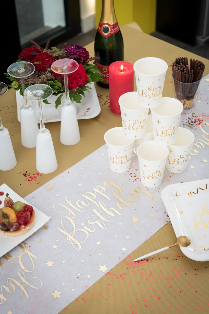 Stolová šerpa Happy Birthday - zlatý potisk hvězdy 30 cm x 5 m