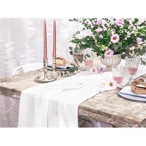 Stolová šerpa v krémové barvě vhodná na dekoraci stolu při svatbách a jiných akcích. Vhodná například jako stolová šerpa pro slavnostní tabule. Hodí na jakoukoliv oslavu narozenin, grilovačku nebo party. šerpa je také ekologicky šetrné a biologicky odbouratelná, což je činí perfektním doplňkem pro vaši party.
