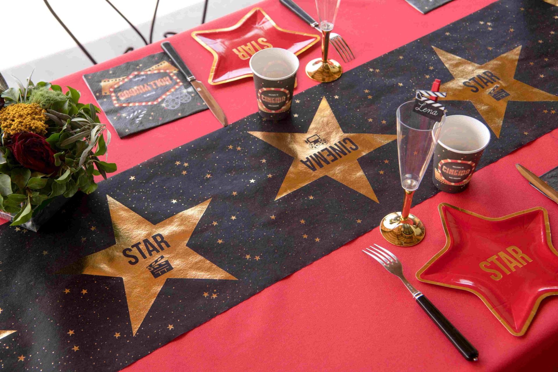 Chystáte tematickou oslavu ve stylu červeného koberce? Černá stolová šerpa se zlatou hvězdou a nápisem CINEMA je přesně tím doplňkem, který promění každý stůl v kulisu hollywoodské slávy. Skvěle se hodí na narozeninové party ve filmovém stylu, večírky k premiérám, filmové maratony i tematické plesy.