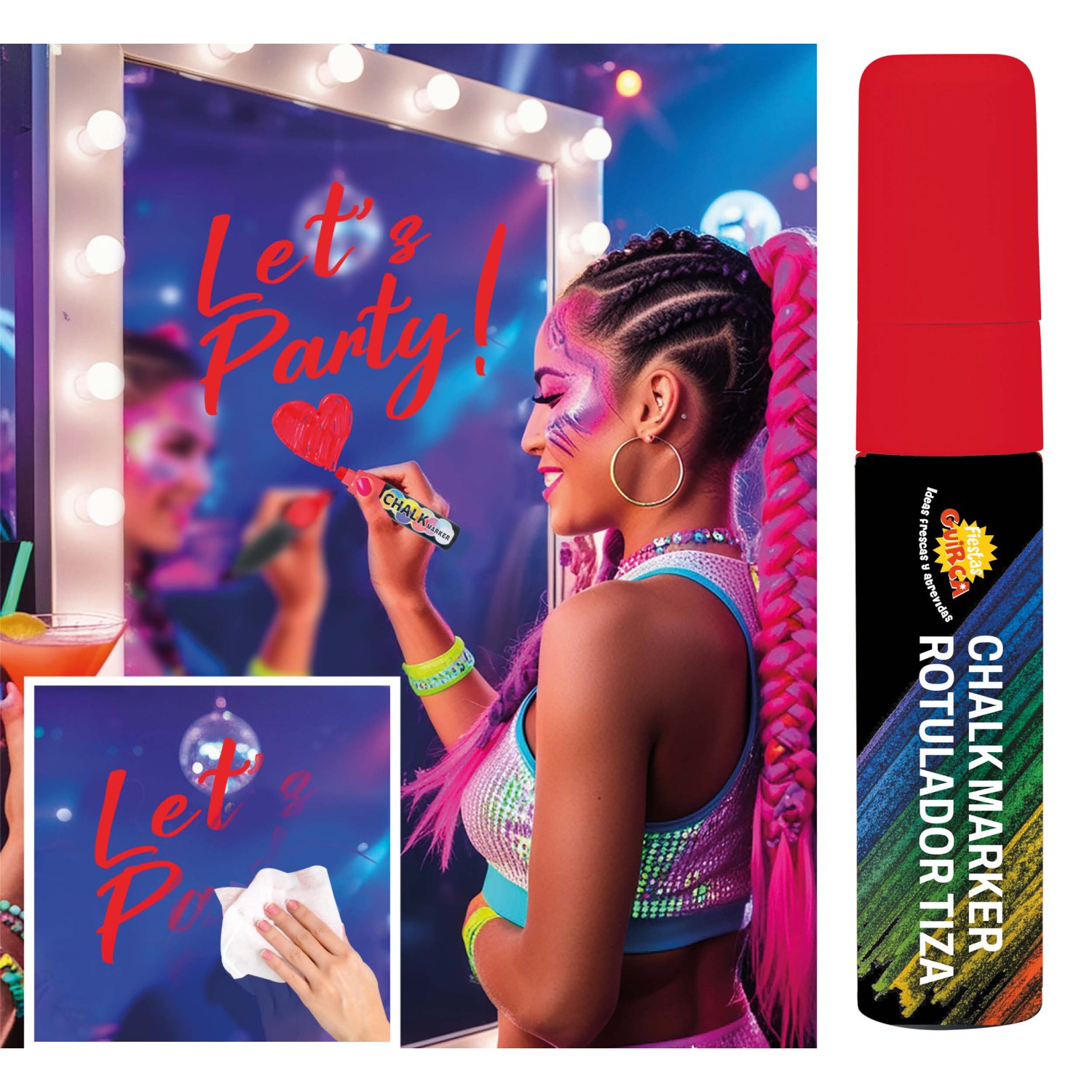 Červený popisovač s tekutou křídou je ideální pro tvorbu poutavých nápisů na křídových tabulích, výlohách, skle nebo zrcadlech. Intenzivní barva zajistí, že vaše sdělení bude dobře viditelné i z větší vzdálenosti.