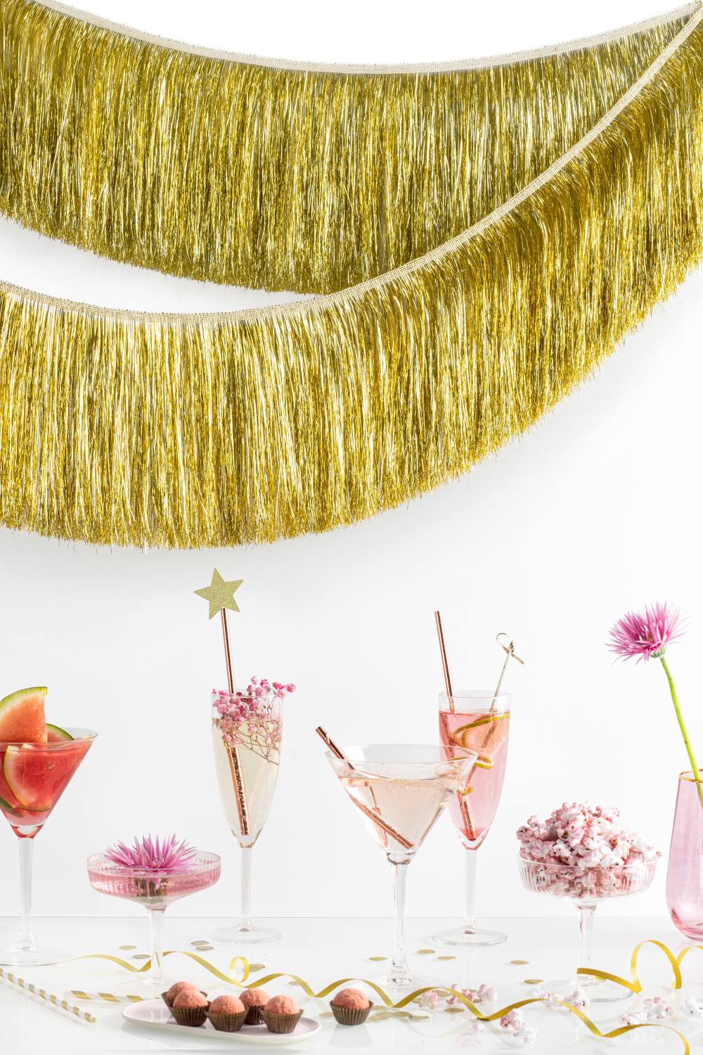 Zlatá třásňová girlanda je oblíbeným prvkem pro výzdobu moderních party i slavnostních akcí. Díky šířce 135 cm a výšce 20 cm vytvoří efektní lesklý prvek, který vynikne na stěně, za candy barem, u fotokoutku nebo jako doplněk stolní dekorace. Hodí se na narozeniny, firemní večírky, vánoční setkání, svatby i silvestrovské oslavy. Je lehká, snadno se uchycuje a krásně odráží světlo, takže dodá prostoru výrazný slavnostní nádech.
