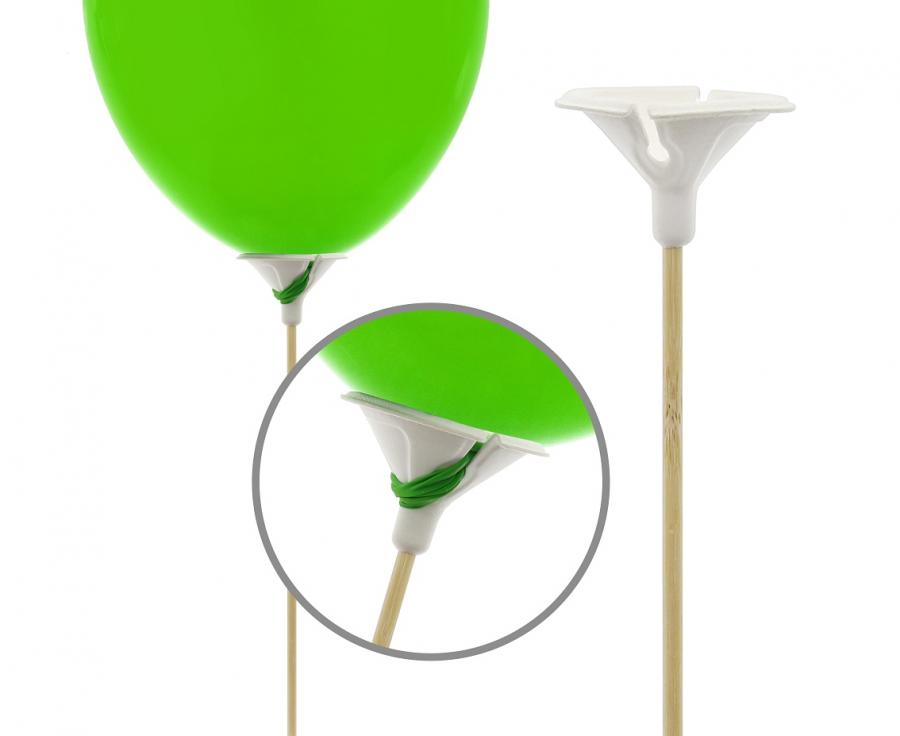 Pevná a ekologická tyčka pro balonky nafukované vzduchem. Bambusová tyčka s papírovými kloboučkem, která zajistí odolnost a stabilitu. Vhodné pro latexové balonky do 48 cm i fóliové balonky do 45 cm.
