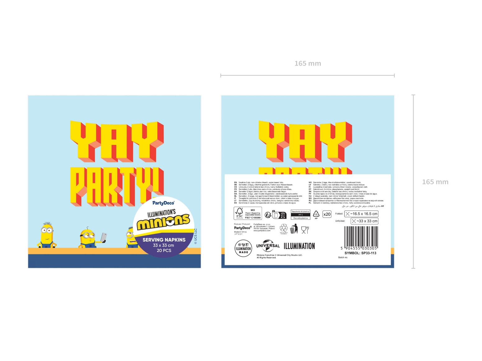 - Papírové ubrousky Mimoni Yay Party 33 x 33 cm, 20 ks