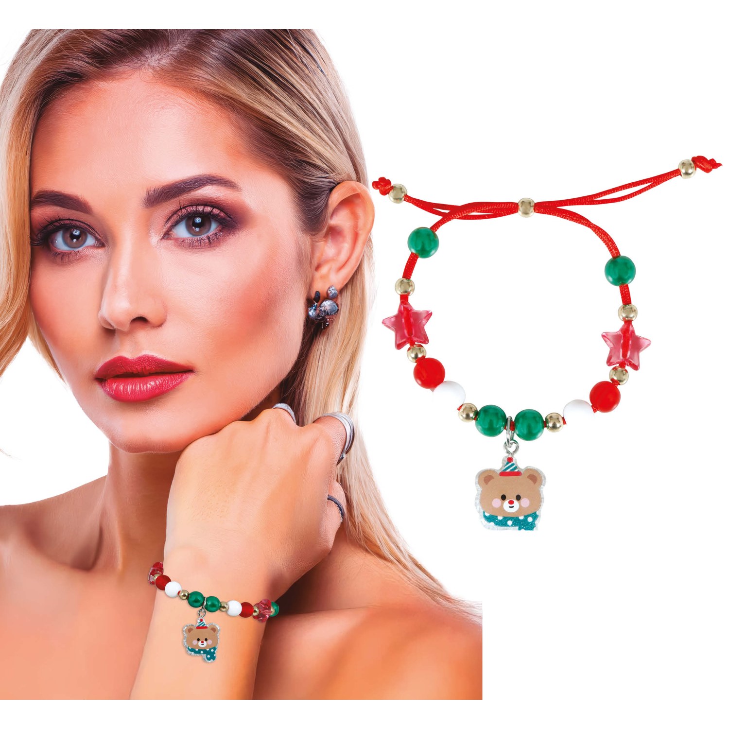 Vánoční náramek s přívěskem medvídka vykouzlí hravou a sváteční atmosféru na každé zimní akci. Kombinace zelených, červených, bílých a zlatých korálků působí tradičně vánočně, zatímco dvě průhledné hvězdičky dodávají náramku jemný třpyt. Přívěsek roztomilého medvídka v čepičce dělá z tohoto doplňku ideální ozdobu pro děti i dospělé.