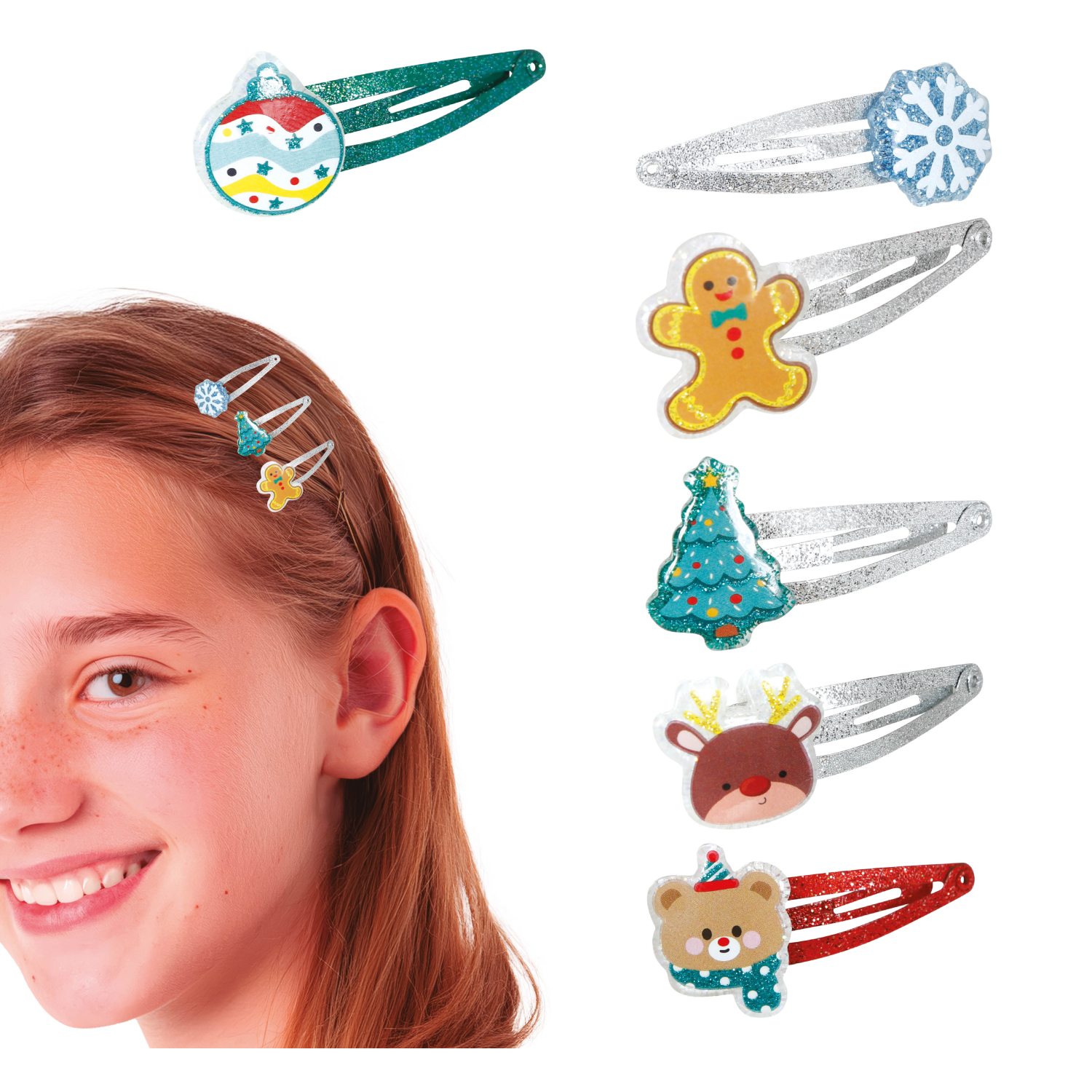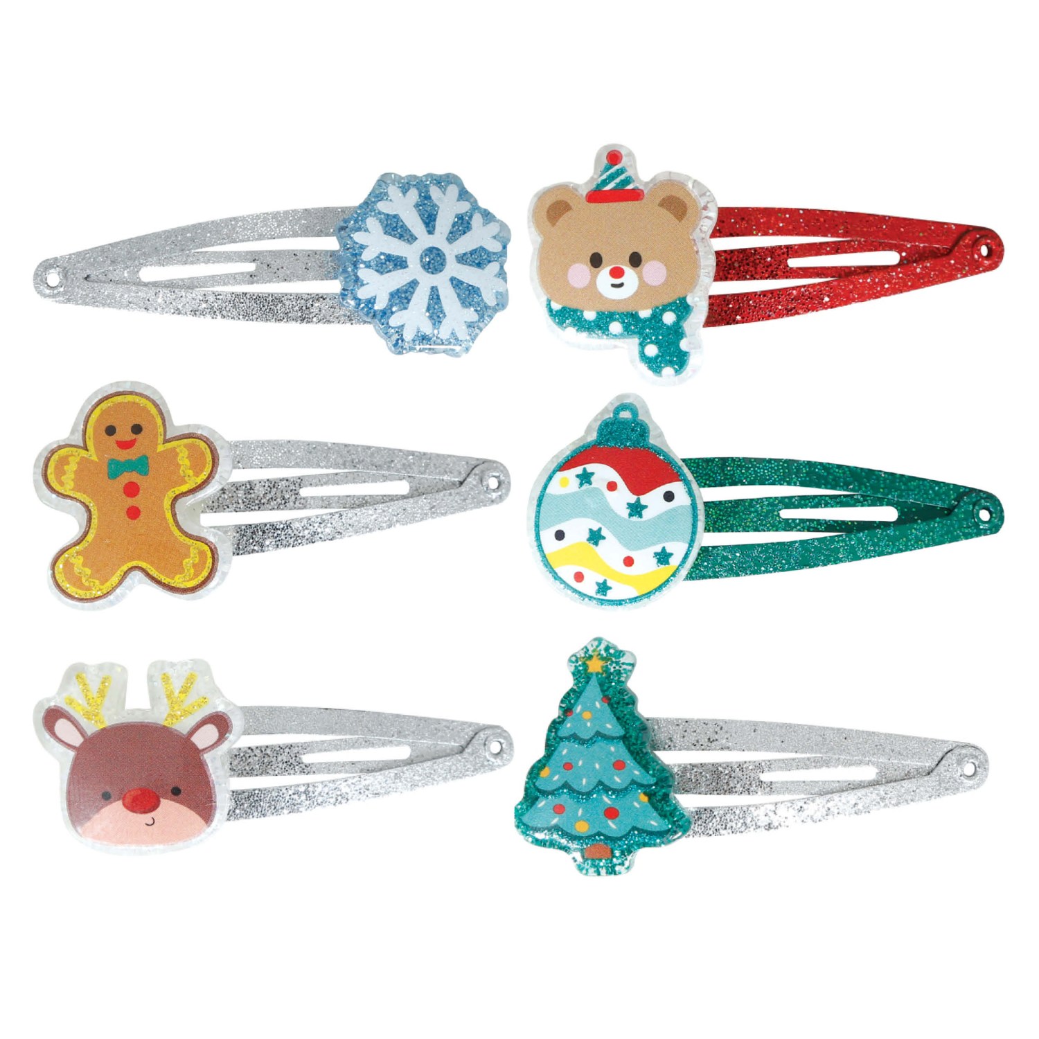 Set zahrnuje motivy sněhové vločky, vánoční ozdoby, perníčka, sobíka, medvídka a vánočního stromečku. Díky klasickému zacvakávacímu mechanismu drží dobře i v jemných dětských vlasech. Jsou skvělým malým dárkem, doplňkem k vánočním balíčkům nebo překvapením v adventním kalendáři.