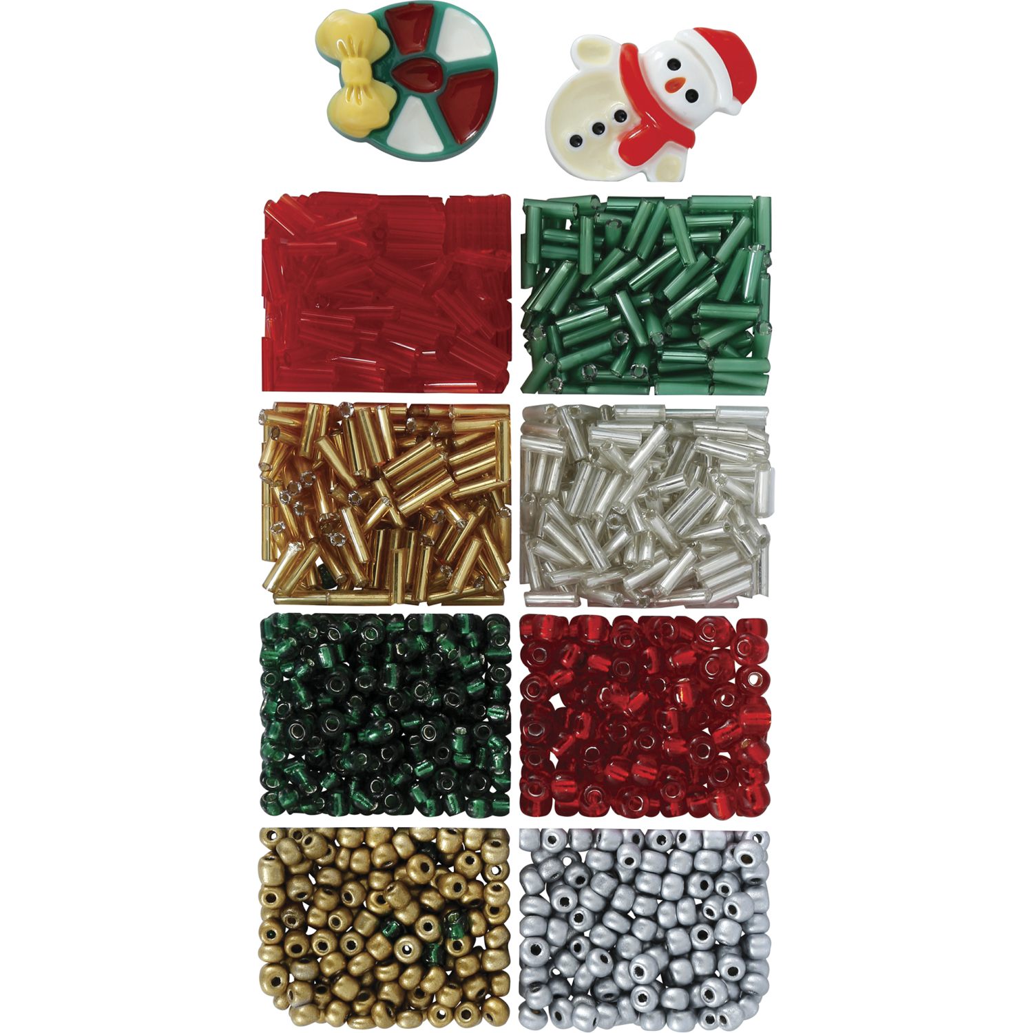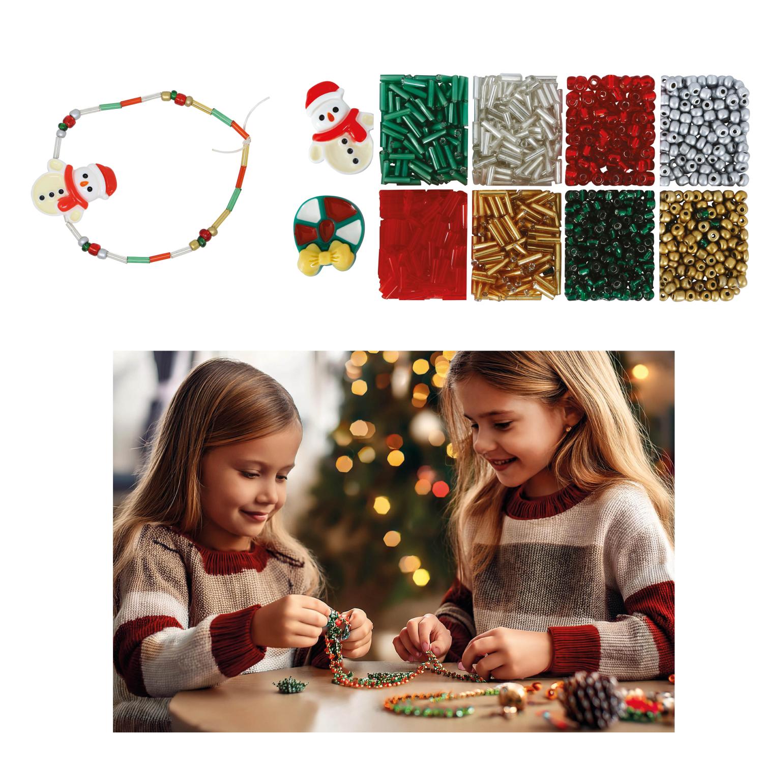 Tato kreativní sada obsahuje 1100 korálků v tradičních vánočních barvách – červené, zelené, zlaté, stříbrné i metalické odstíny – a také tematické plastové přívěsky, jako je sněhulák nebo vánoční věnec. Sada je ideální pro výrobu vlastních náramků, ozdob nebo drobných dárků, které potěší každého.