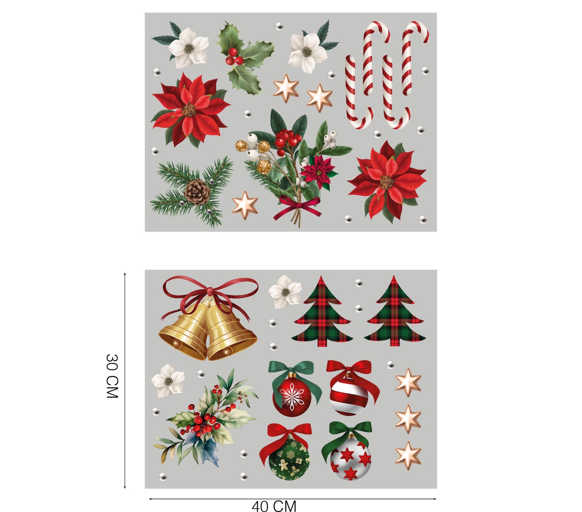 Vánoční dekorace na okno, díky které můžete naladit atmosféru ve vašem bytě. Zároveň bude vaše okno vypadat skvěle po celou dobu vánočních svátků. Sada se skládá ze dvou listů velikosti 30 x 40 cm naplněných samolepkami, které se dají jednoduše nalepit i sundat z okna.