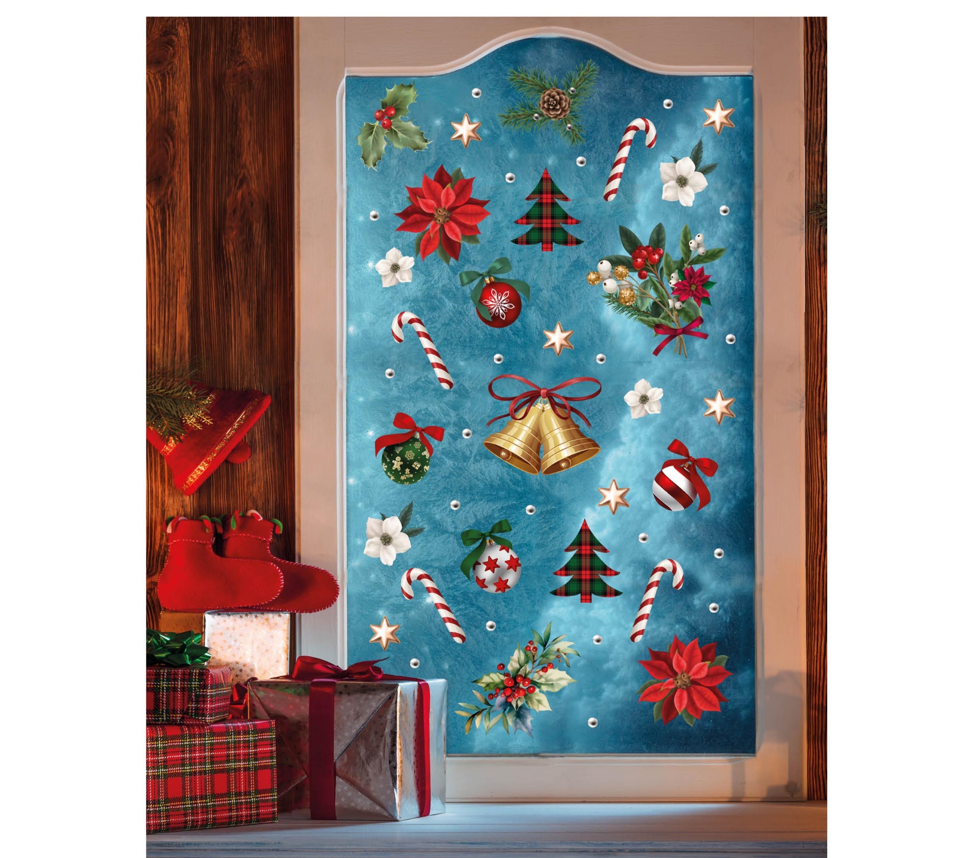 Vánoční dekorace na okno, díky které můžete naladit atmosféru ve vašem bytě. Zároveň bude vaše okno vypadat skvěle po celou dobu vánočních svátků. Gelové samolepky krásně přilnou a dají se použít opakovaně.
