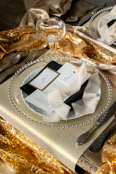 Luxusní zlatý běhoun dodá vašemu stolu slavnostní lesk. Ideální na svatby, vánoční večeře, silvestr nebo elegantní narozeninové oslavy. Délka 3 metry, šířka 36 cm.