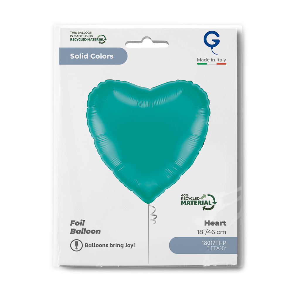 Foliowy balon w kształcie serca Tiffany wyróżnia się delikatnym turkusowym kolorem, inspirowanym kultowym, eleganckim stylem. Błyszczące wykończenie nadaje balonowi atrakcyjny wygląd, który sprawia, że wygląda świeżo, nowocześnie i jednocześnie luksusowo.