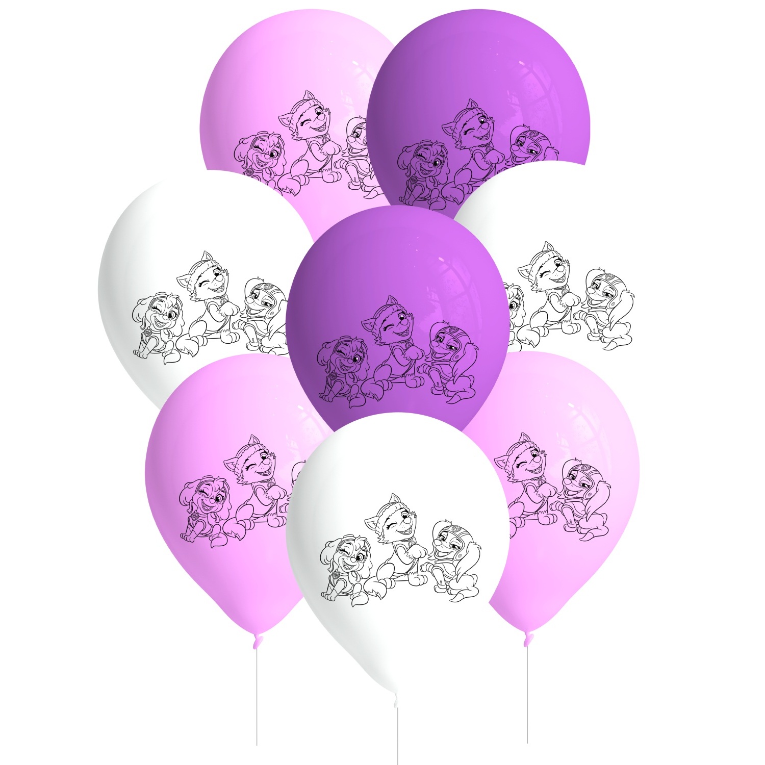 Lateksowe balony Skye z Psiego Patrolu to nieodłączny element każdego przyjęcia dla dzieci w tym popularnym motywie. Delikatne połączenie odcieni różu, bieli i fioletu wygląda radośnie i świetnie komponuje się z innymi dekoracjami z serii Psi Patrol.