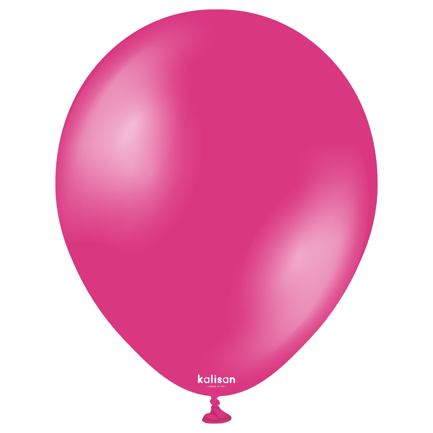 Metaliczne balony lateksowe w kolorze fuksji, rozmiar 30 cm (11 cali). Ciemnoróżowy odcień z metalicznym połyskiem, nadają się do pompowania powietrzem i helem. Idealne do girland balonowych, bukietów i efektownych dekoracji imprezowych. Opakowanie 50 sztuk.