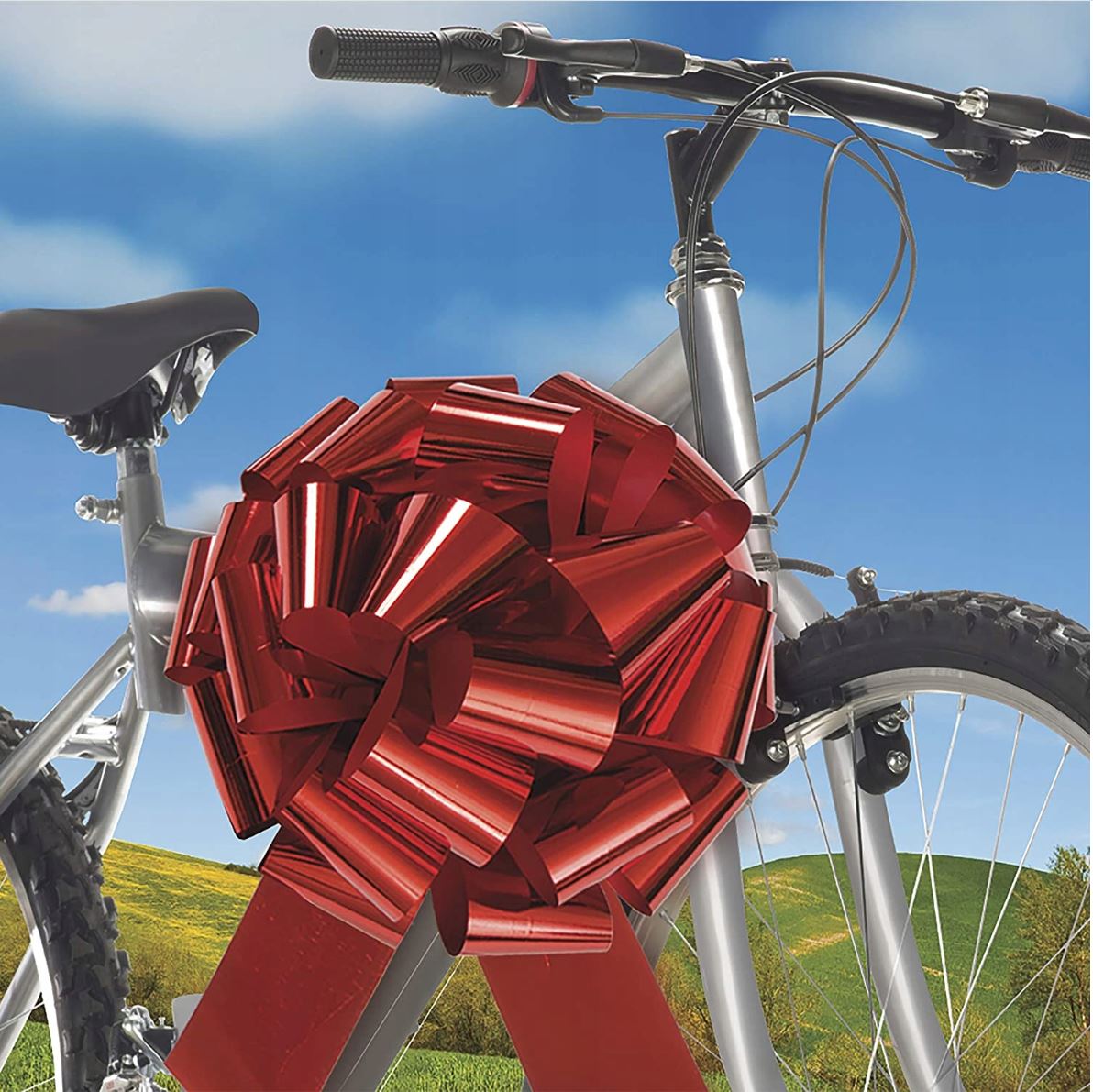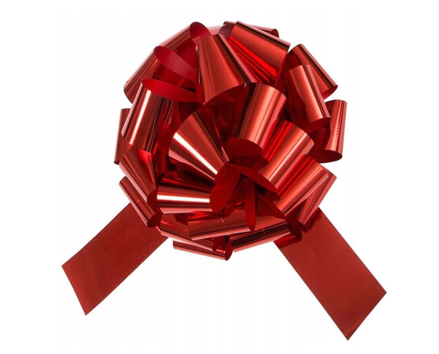 Duża czerwona kokarda to idealny sposób, aby zamienić zwyczajne wręczanie prezentów w niezapomniane wydarzenie. Idealna na prezent samochodowy, motocyklowy lub inną większą ceremonię wręczania prezentów, gdzie chcesz zrobić naprawdę mocne pierwsze wrażenie.