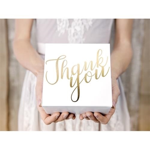 Biela krabička s mašličkou vhodná napríklad na svadobné cukrovinky alebo malý darček. Ďalšou možnosťou je využiť krabičku pri dekorácii ako podstavec a pod. Hodí sa na všetky príležitosti, ako sú svadby, firemné večierky alebo oslavy narodenín.