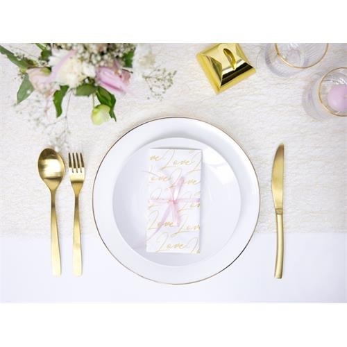 Elegantný jutový behúň zdobený čipkou o rozmere 28 x 275 cm je ideálny pre svadobné tabule, narodeninové oslavy aj záhradné párty. Ekologický materiál dodá dekorácii prírodný vzhľad a romantický šarm.