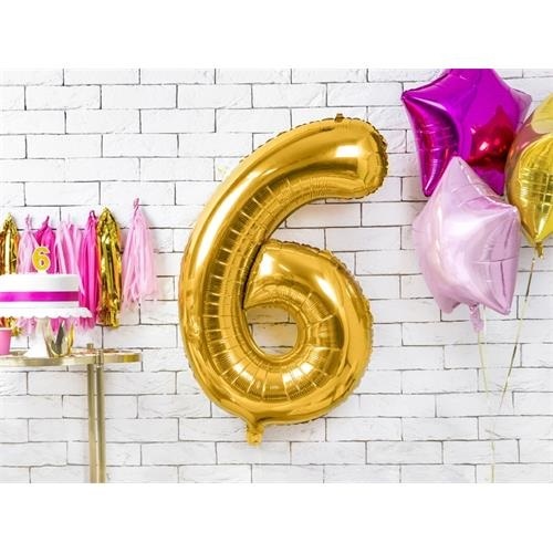 Fóliová číslica 6 v zlatej farbe o veľkosti 86 cm je ideálnou dekoráciou na narodeninové oslavy, výročia či firemné večierky. Balónik je možné nafúknuť vzduchom aj héliom a ľahko skombinovať s ďalšími číslicami pre vytvorenie ľubovoľnej zostavy.