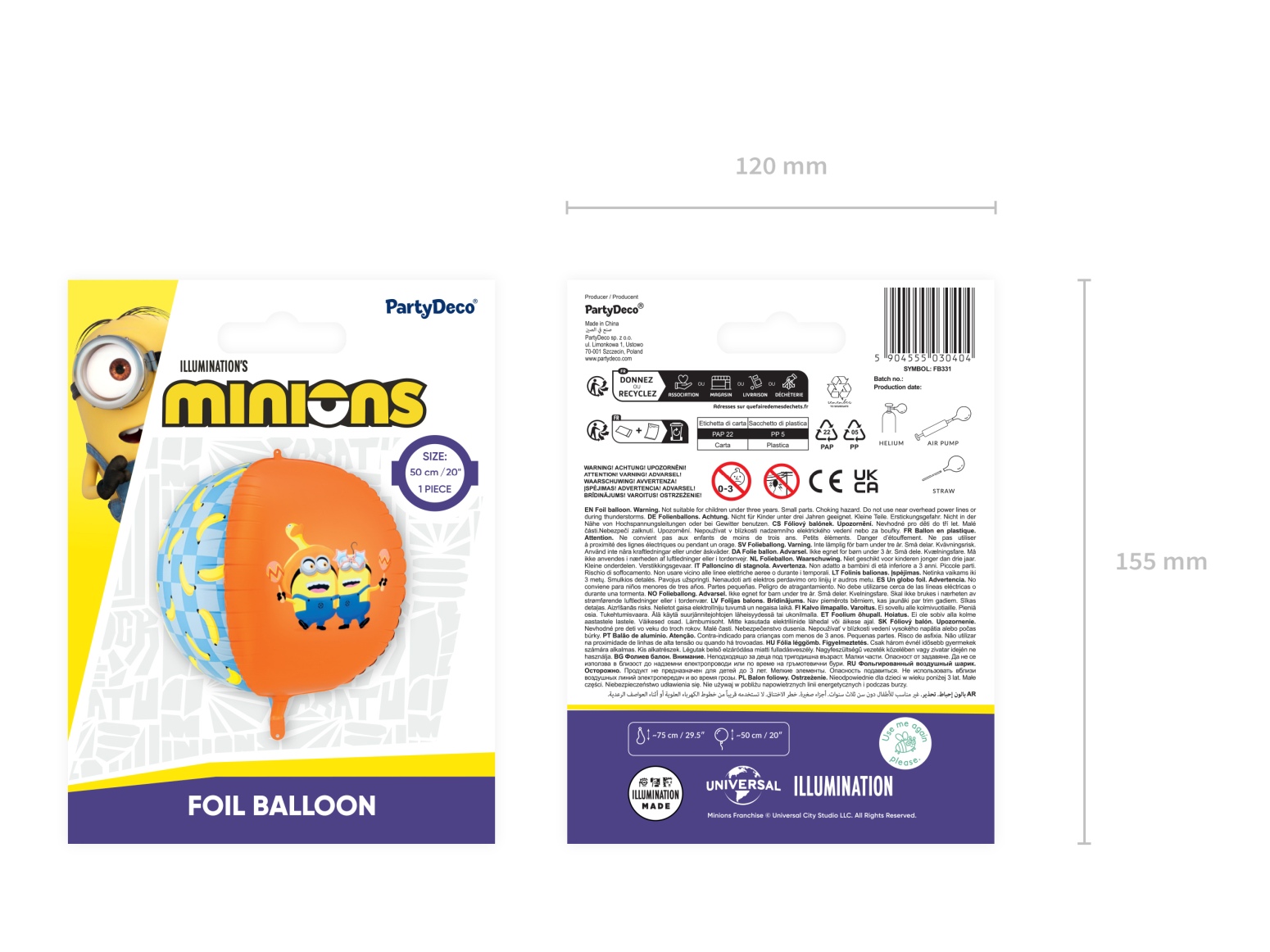 Originálny fóliový balónik v tvare gule s motívom Mimoni je skvelou voľbou pre tematickú detskú oslavu, narodeniny alebo párty v štýle Minions. Vďaka svojmu 3D okrúhlemu tvaru pôsobia oveľa výraznejšie ako klasické ploché balóniky a stane sa neprehliadnuteľným prvkom celej výzdoby.