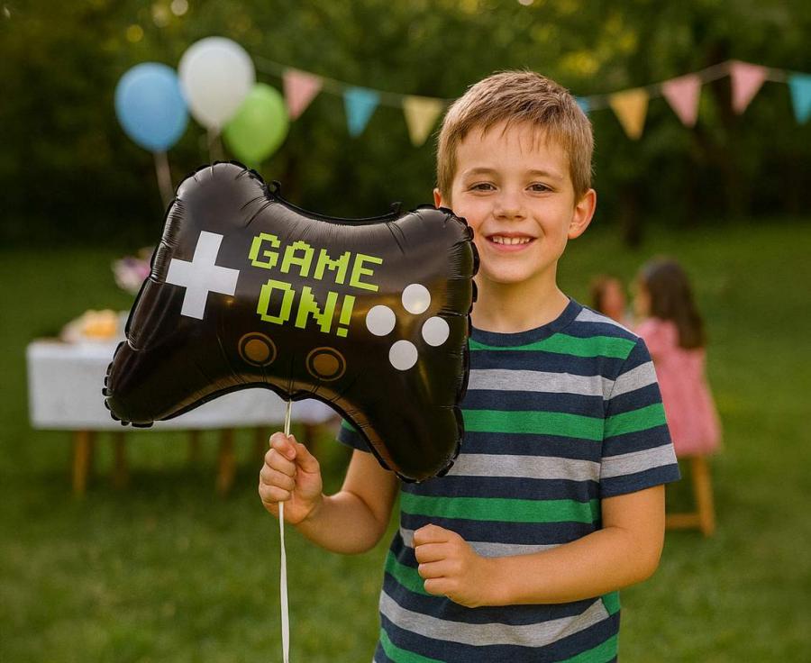 Fóliový balonek Game On v tvare herného ovládača poteší všetkých fanúšikov videohier – malých aj veľkých hráčov. Vďaka výraznému nápisu GAME ON! a typickému dizajnu ovládača pôsobí moderne a dodá výzdobe herný štýl. Je ideálny na narodeninové oslavy, herné párty, LAN eventy aj ako doplnok k darčeku.