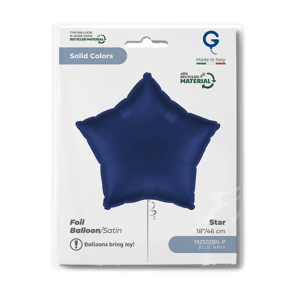 Fóliový balónik v tvare hviezdy v odtieni Satin Blue Navy zaujme hlbokou tmavo modrou farbou, ktorá pôsobí elegantne, pokojne a veľmi sofistikovane. Saténový povrch vytvára jemný, tlmený lesk, vďaka ktorému balónik pôsobí luxusnejšie ako klasické lesklé varianty.