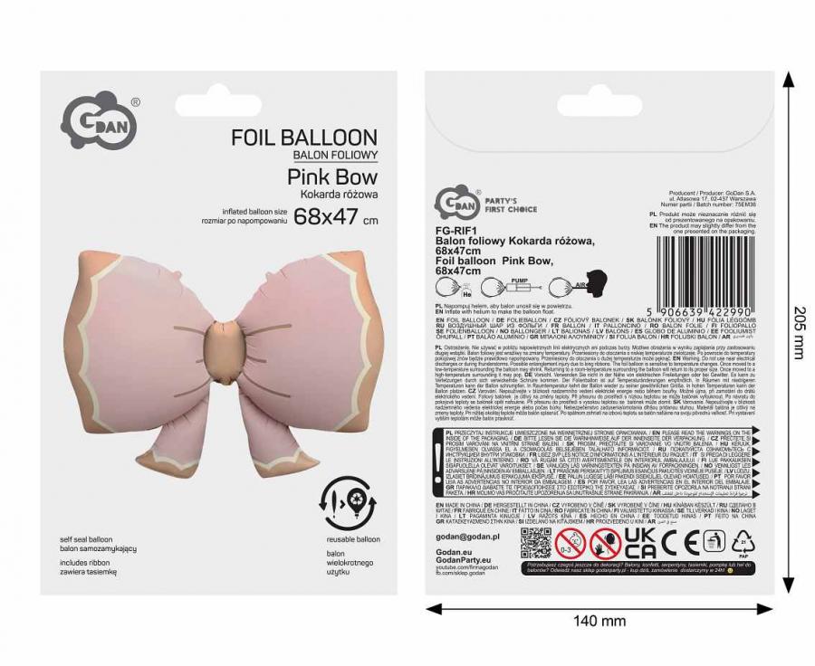 Fóliový balónik v tvare ružovej mašle je elegantnou dekoráciou vhodnou na narodeniny, baby shower, oslavy pre dievčatká aj romantické akcie. Vďaka jemnému dizajnu krásne doplnia pastelovú aj glamour výzdobu. Možno plniť vzduchom aj héliom. Veľkosť po nafúknutí 68 × 47 cm.