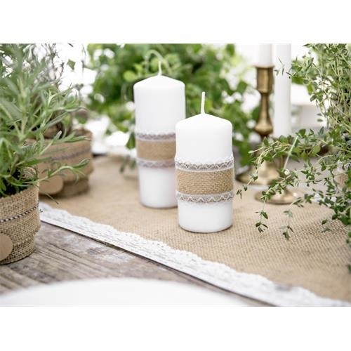 Jutová stuha s čipkou v návine 5 metrov, šírka stuhy 5 cm. Môžete z nej vyrobiť mašle na kvetinové väzby alebo vence, ozdobiť svietniky, svadobné vankúšiky či ju naaranžovať na stôl. Hodí sa pri rôznych akciách ako je svadba, oslava narodenín, krstiny, babyshower a pod.