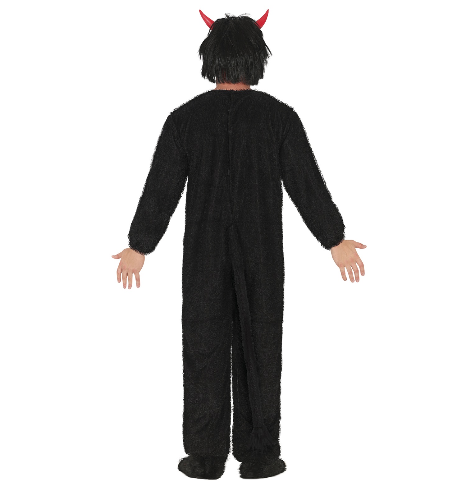 Kostým čerta pre dospelých v čiernom chlpatom overale s chvostom, veľkosť L. Ideálny kostým na mikulášsku nádielku aj strašidelnú halloweensku oslavu.