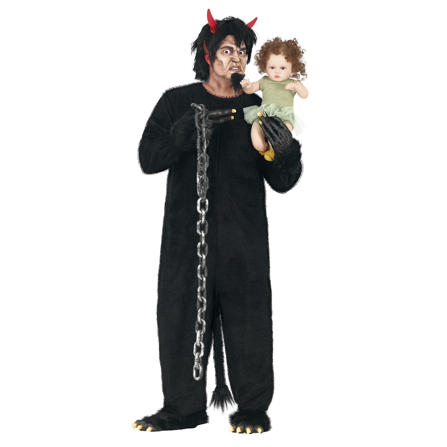 Kostým čert Krampus XL je skvelá voľba na mikulášsku nádielku aj tematické párty. Hebká čierna tunika s chlpatým povrchom a ocáskom vytvára výrazný pekelný vzhľad. Kostým je pohodlný, príjemný na nosenie a ideálne ho doplniť o masku, rohy či reťaz.