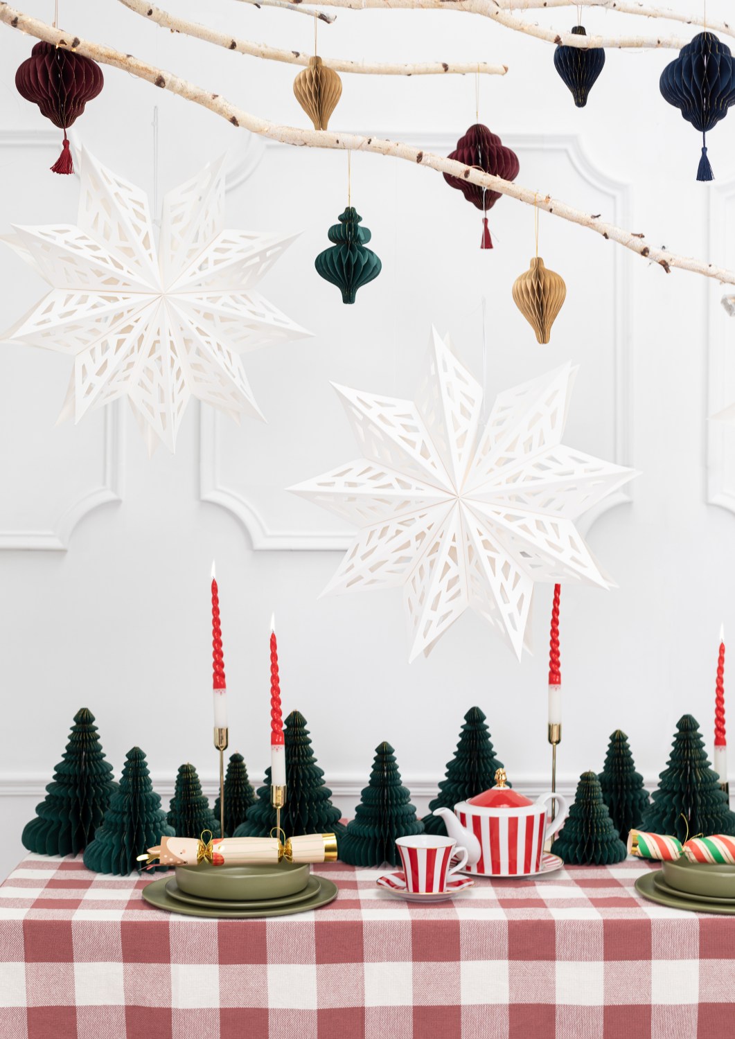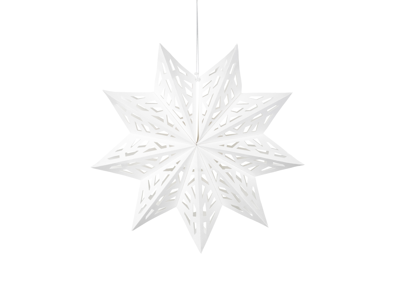Papierová závesná hviezda v bielej farbe s priemerom 50 cm je elegantná zimná a vianočná dekorácia. Jemný vyrezávaný vzor vytvára príjemnú svetelnú hru a hviezda krásne vynikne v oknách, na stenách, vo výkladoch či slávnostných priestoroch.