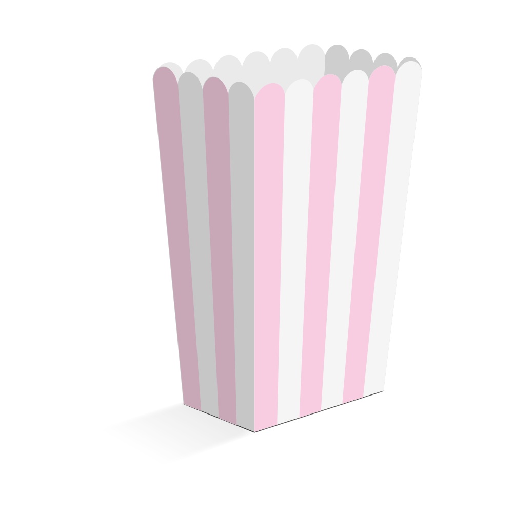 Krabičky na občerstvenie ružové 6,3 x 4,4 x 13,5 cm sú papierové boxy na popcorn, sladkosti aj snacky. Balenie obsahuje 8 ks, ideálne pre candy bar, narodeninovú oslavu, baby shower aj dievčenskú párty.