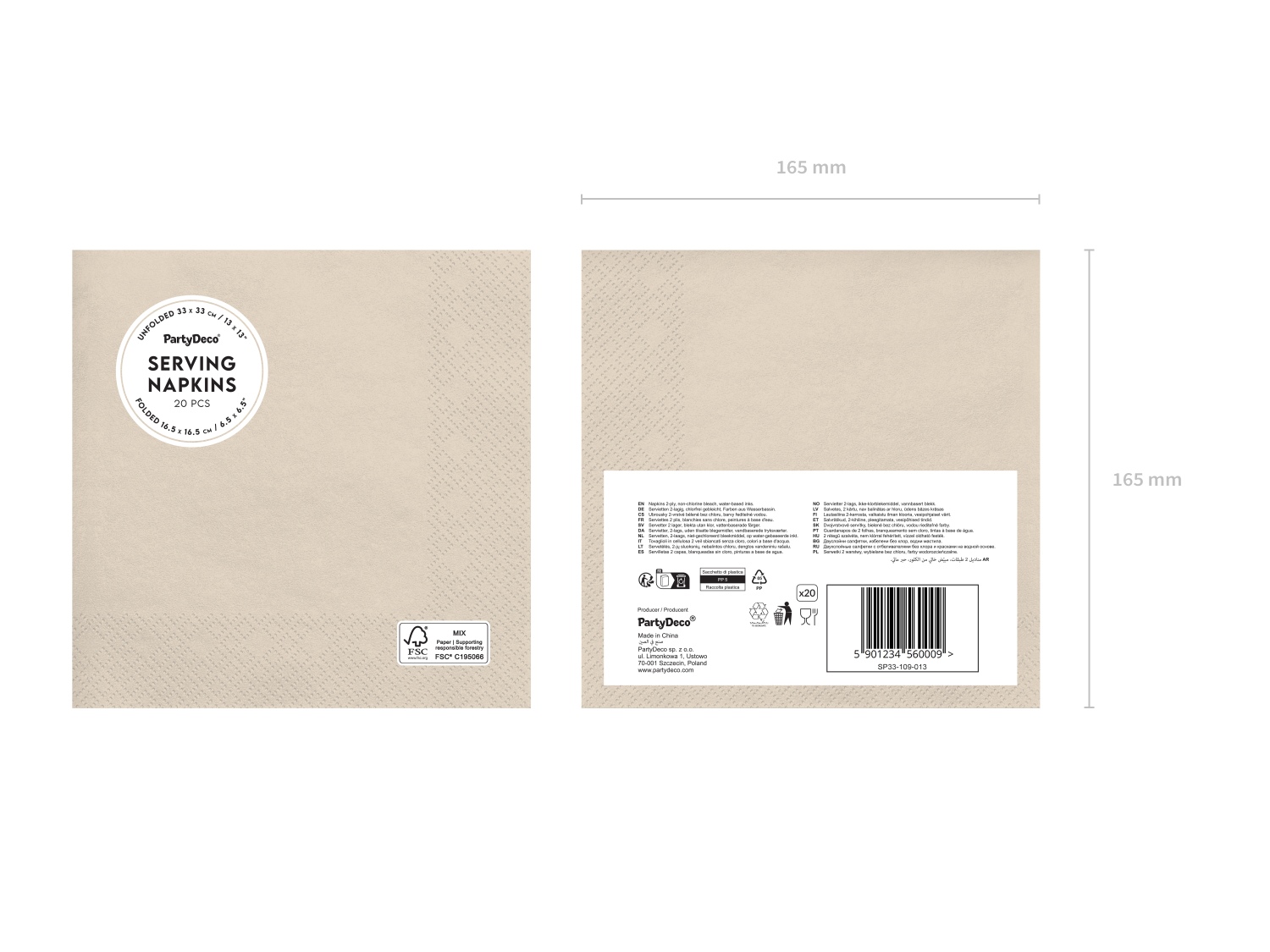 Papierové obrúsky béžové 33 × 33 cm – 20 ks