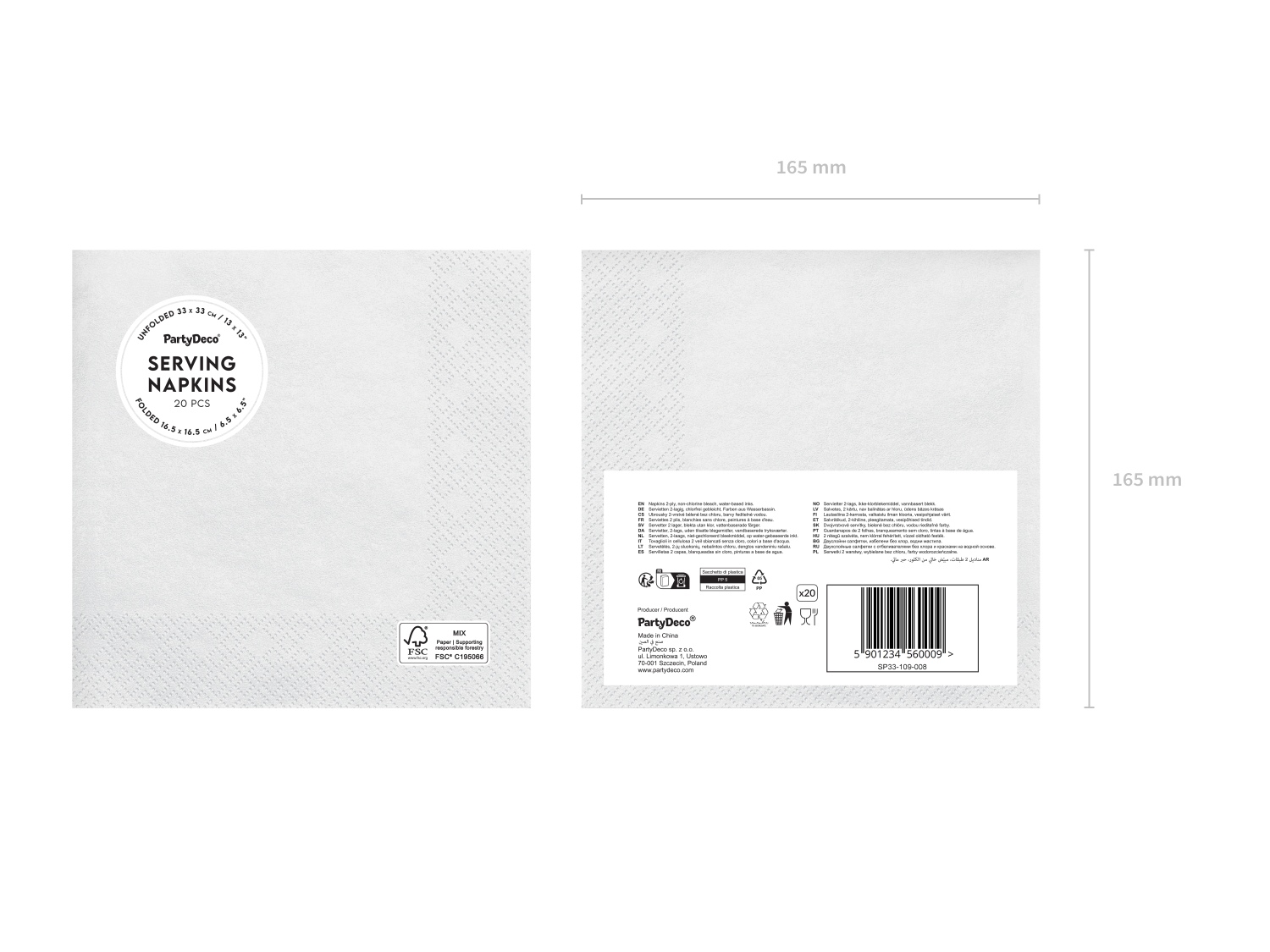 Klasické papierové servítky v elegantnej bielej farbe sú univerzálnym doplnkom každého stolovania. Rozmer 33 × 33 cm po rozložení z nich robí ideálnu voľbu na slávnostné obedy, večere, narodeninové párty či svadby. Vďaka jednoduchému dizajnu ich ľahko zladíte s farebnými taniermi, pohárikmi a ďalšími doplnkami. Jednorazové prevedenie zabezpečí rýchle upratovanie po akcii a zároveň čistý a upravený stôl počas oslavy.