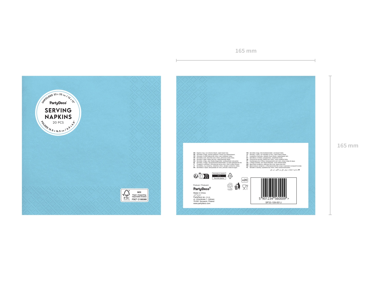 Svetlomodré papierové servítky s rozmerom 33 × 33 cm (po rozložení) sú krásnym doplnkom na slávnostné príležitosti. Jemný pastelový odtieň pôsobí sviežo a jemne, preto sa výborne hodí na baby shower, krstiny, svadby, narodeninové oslavy aj záhradné párty. Servítky sú dvojvrstvové, praktické a dekoratívne zároveň – využijete ich pri servírovaní nápojov, dezertov alebo na udržanie čistoty stola. V balení sa nachádza 20 kusov.