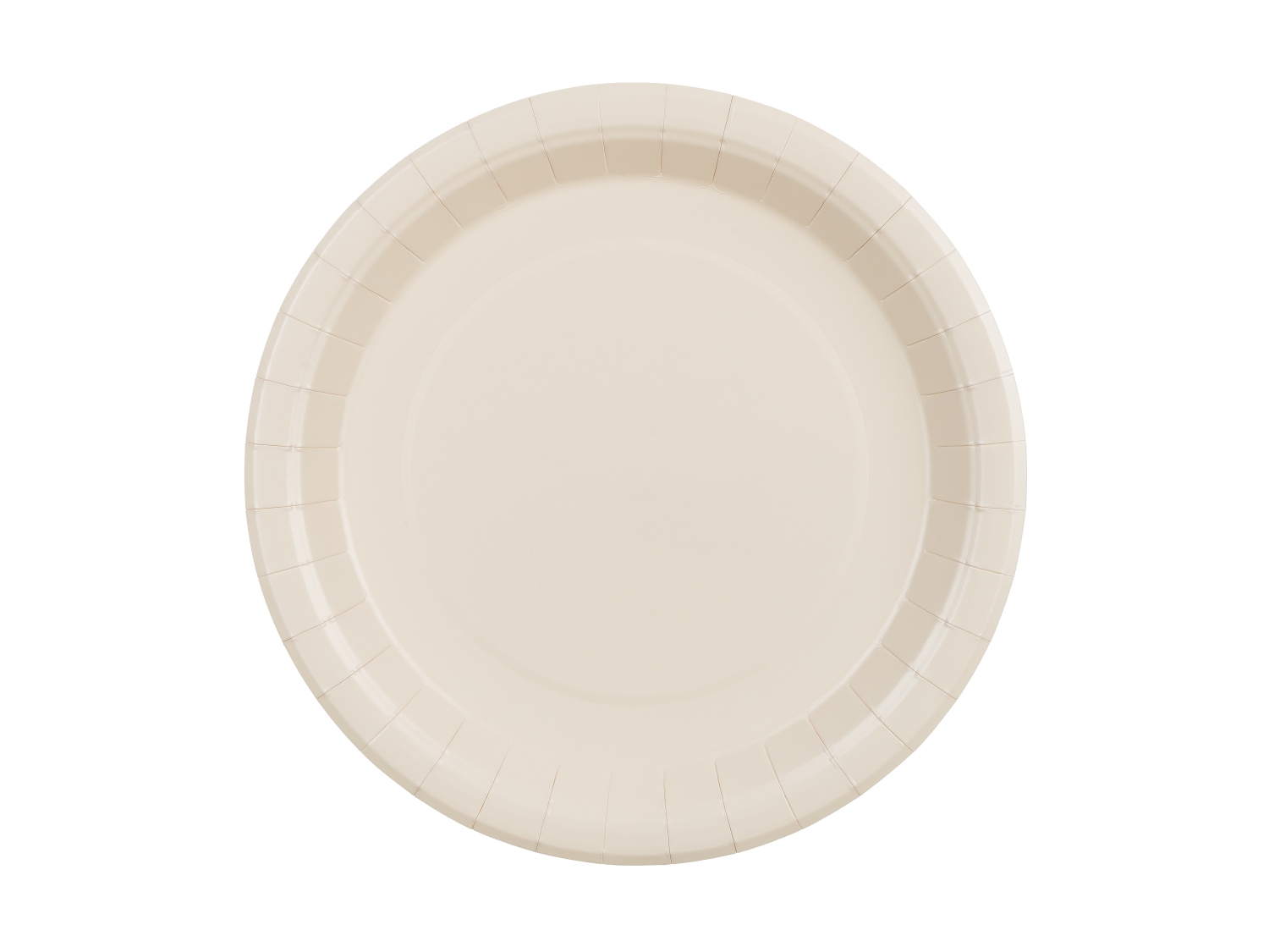 Papierové taniere v béžovej farbe s priemerom 23 cm. Elegantný jednorazový riad pre narodeniny, pikniky, grilovačky aj svadby. V balení 6 kusov.