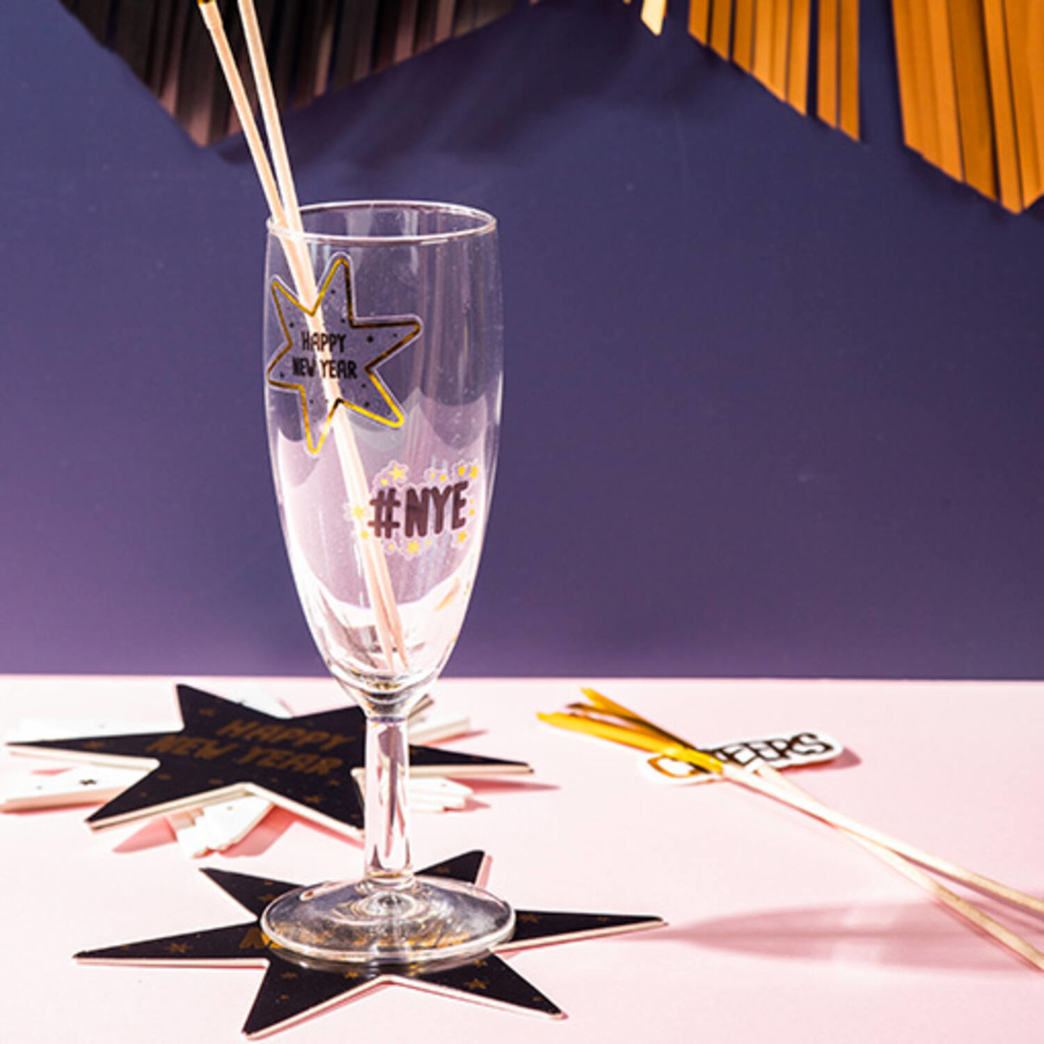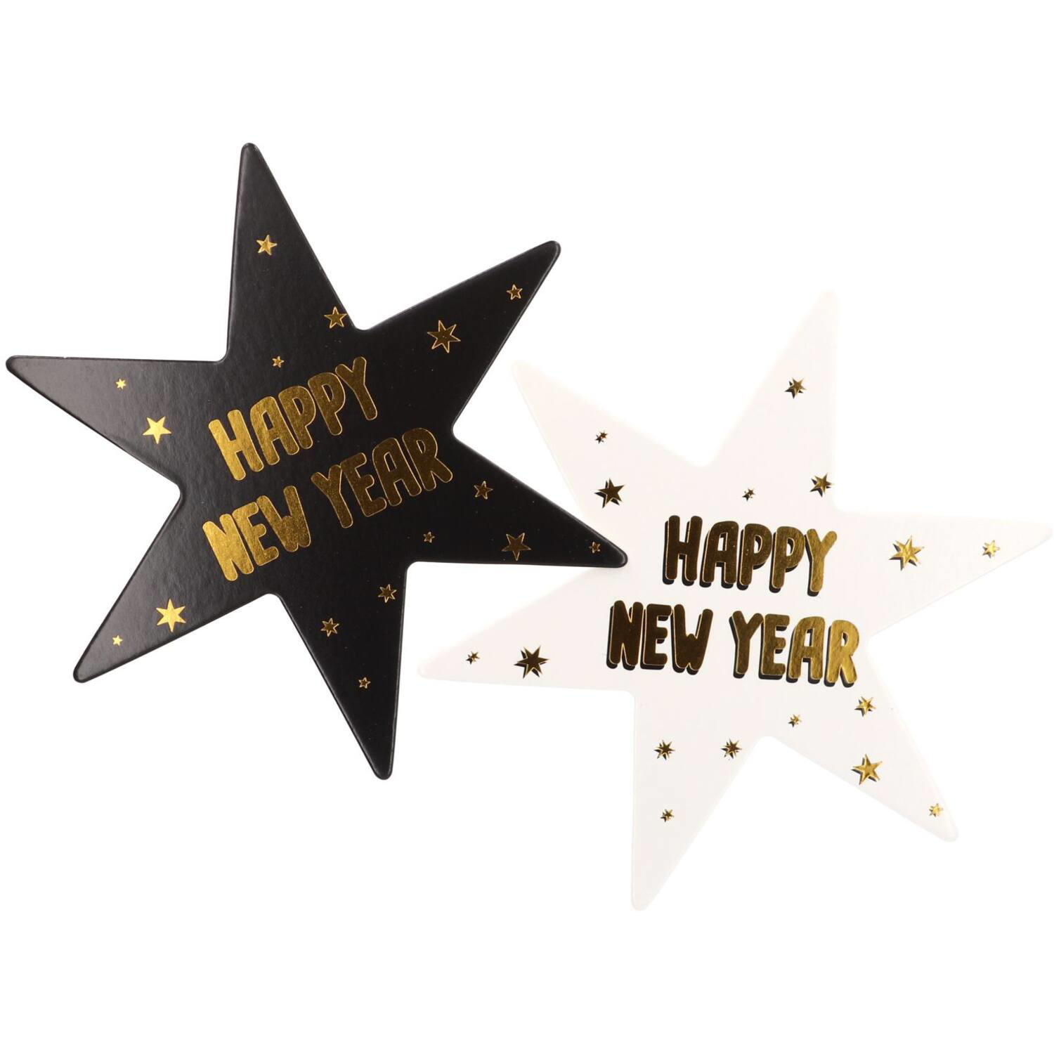 Sada podtáckov - Happy New Year 6 ks je ideálny doplnok pre vašu Silvestrovskú párty alebo Novoročnú oslavu. Táto sada obsahuje 6 podtáckov v tvare hviezdy s nápisom "Happy New Year", ktoré pridajú vašej oslave sviatočný nádych. Sú ľahko čistiteľné a vhodné na opakované použitie. S týmito podtáčkami môžete pripraviť štýlový stôl a zároveň chrániť povrchy pred škvrnami od nápojov.