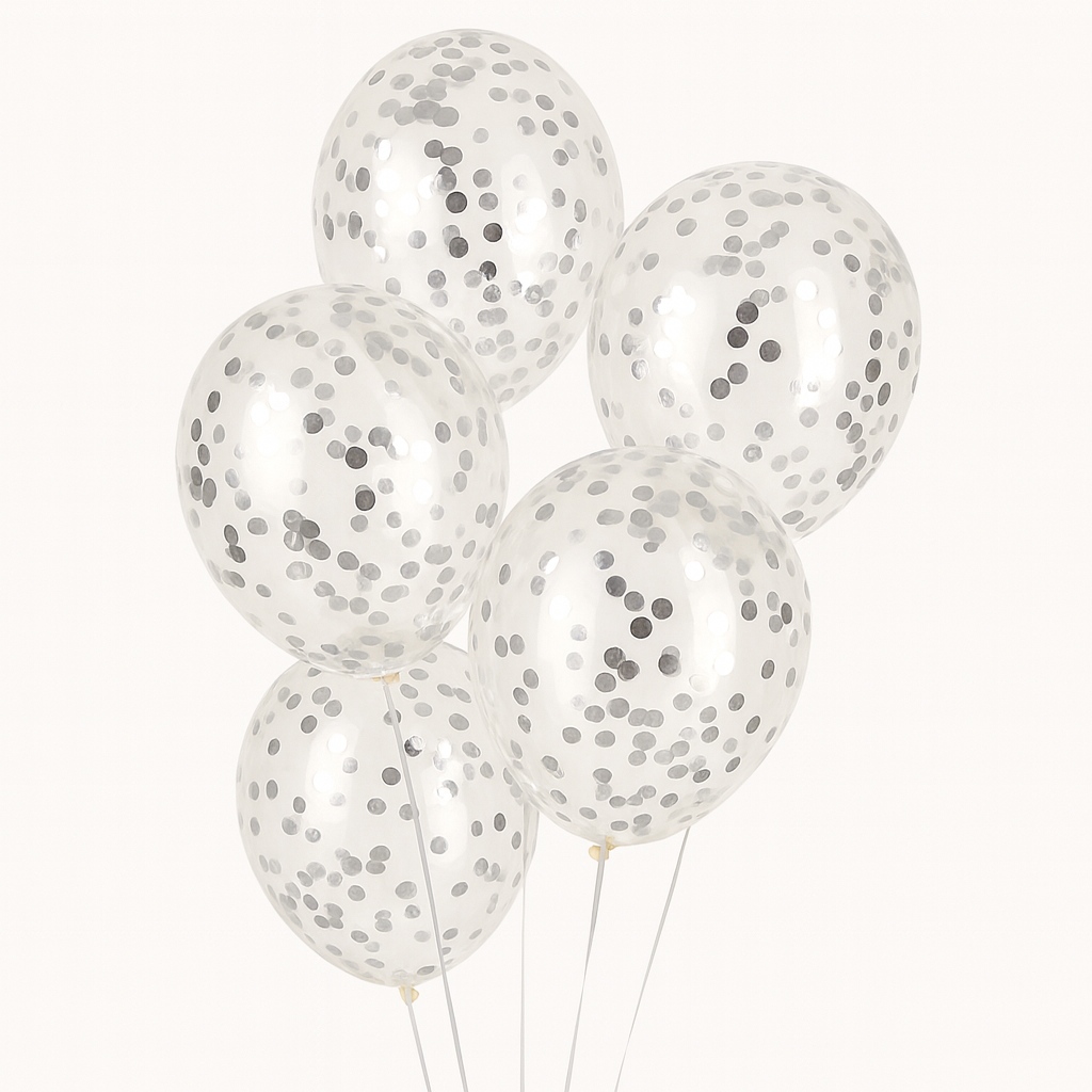 Priehľadné balóniky so striebornými konfetami 30 cm, 5 ks