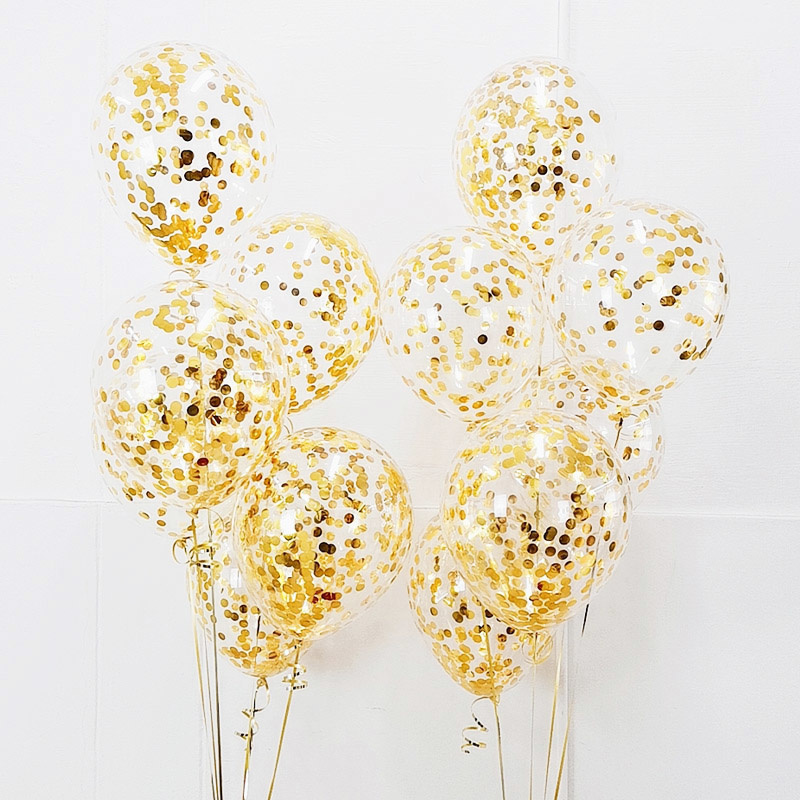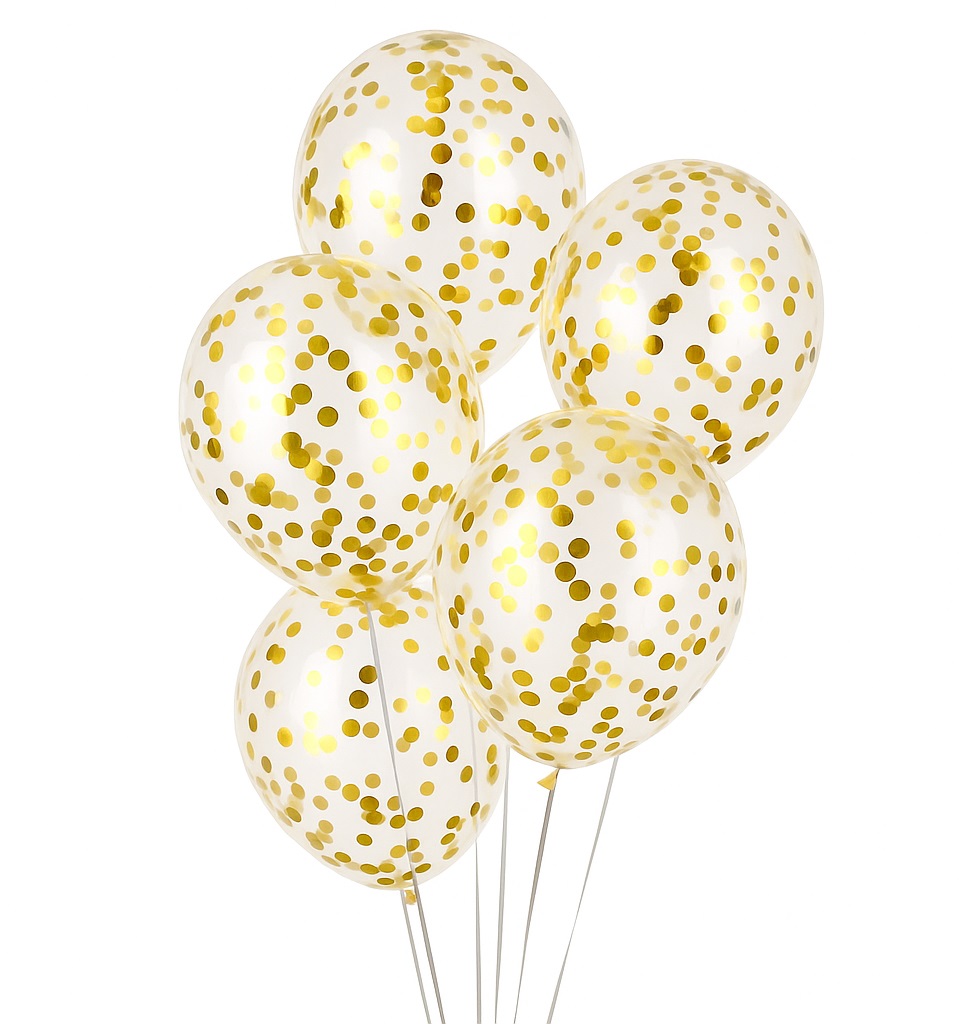 Súprava prémiových latexových a fóliových balónikov. Balenie obsahuje 2 kusy fóliových zlatých sŕdc, 2 kusy fóliových zlatých hviezdičiek s priemerom 45 cm, 10 kusov latexových balónikov s priemerom 30 cm a balenie konfiet. Balóniky sú vhodné na nafúknutie héliom aj vzduchom. Buket sa hodí na narodeninové oslavy, firemné večierky, na Silvestra, Vianoce aj na iné príležitosti.