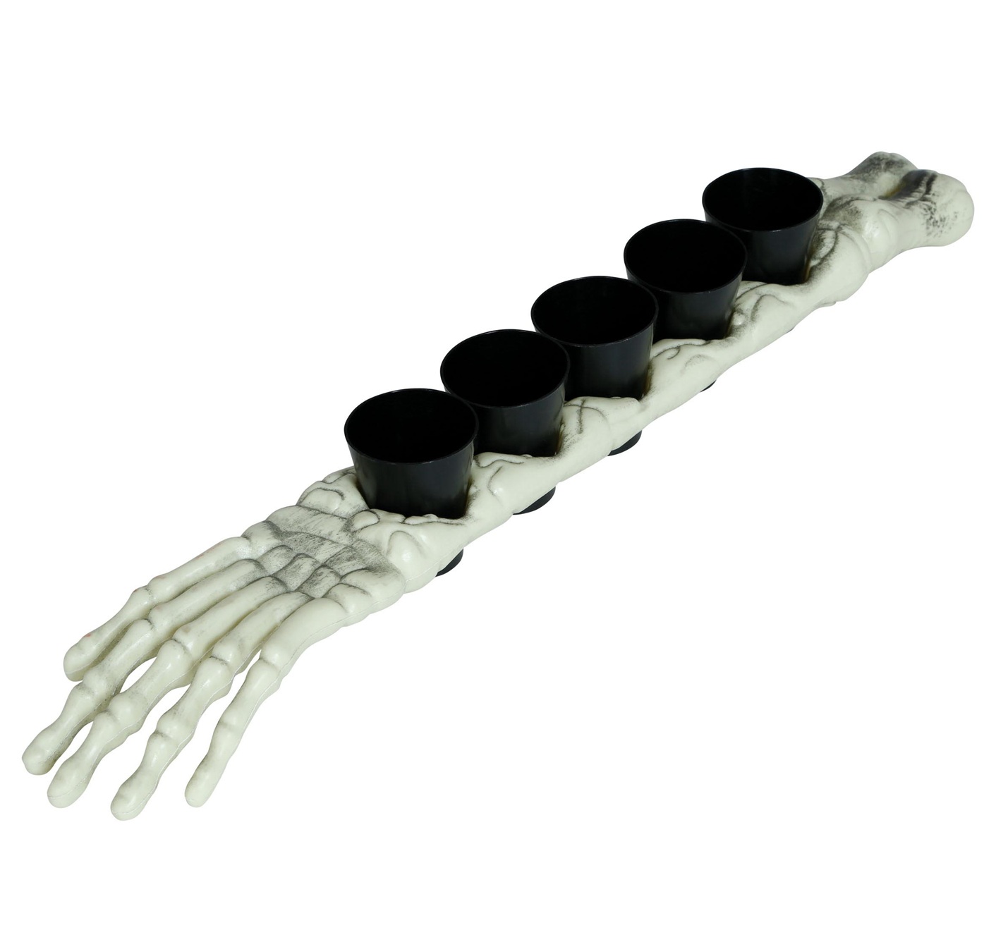 Kostlivcova ruka s panákovými pohármi je jedinečným doplnkom, ktorý dodá vašej halloweenskej párty poriadnu dávku originality. Ruka dlhá 50 cm je detailne vypracovaná a slúži ako stojan na 5 čiernych plastových pohárov, ktoré sú súčasťou balenia. Perfektná voľba na servírovanie drinkov v duchu hororového večera, kde zaujme nielen vzhľadom, ale aj svojou funkčnosťou. Hodí sa na tematické večierky, Halloween party alebo hororové filmové maratóny, kde hostia ocenia tento netradičný barový doplnok.