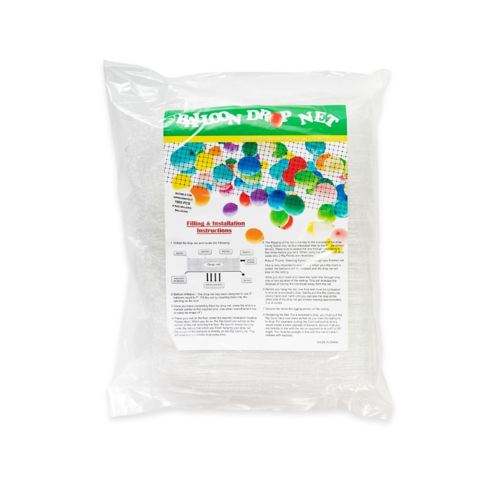 Sieť na vypúšťanie padajúcich balónikov je profesionálna dekorácia určená pre veľké spoločenské akcie, kde chcete vytvoriť skutočne pôsobivý moment. Sieť sa zavesí k stropu alebo do konštrukcie nad tanečný parket, pódium alebo priestor pre hostí a naplnia sa balóniky. V správny okamih sa sieť otvorí a balóniky sa zrazu znesú dole medzi hosťami.