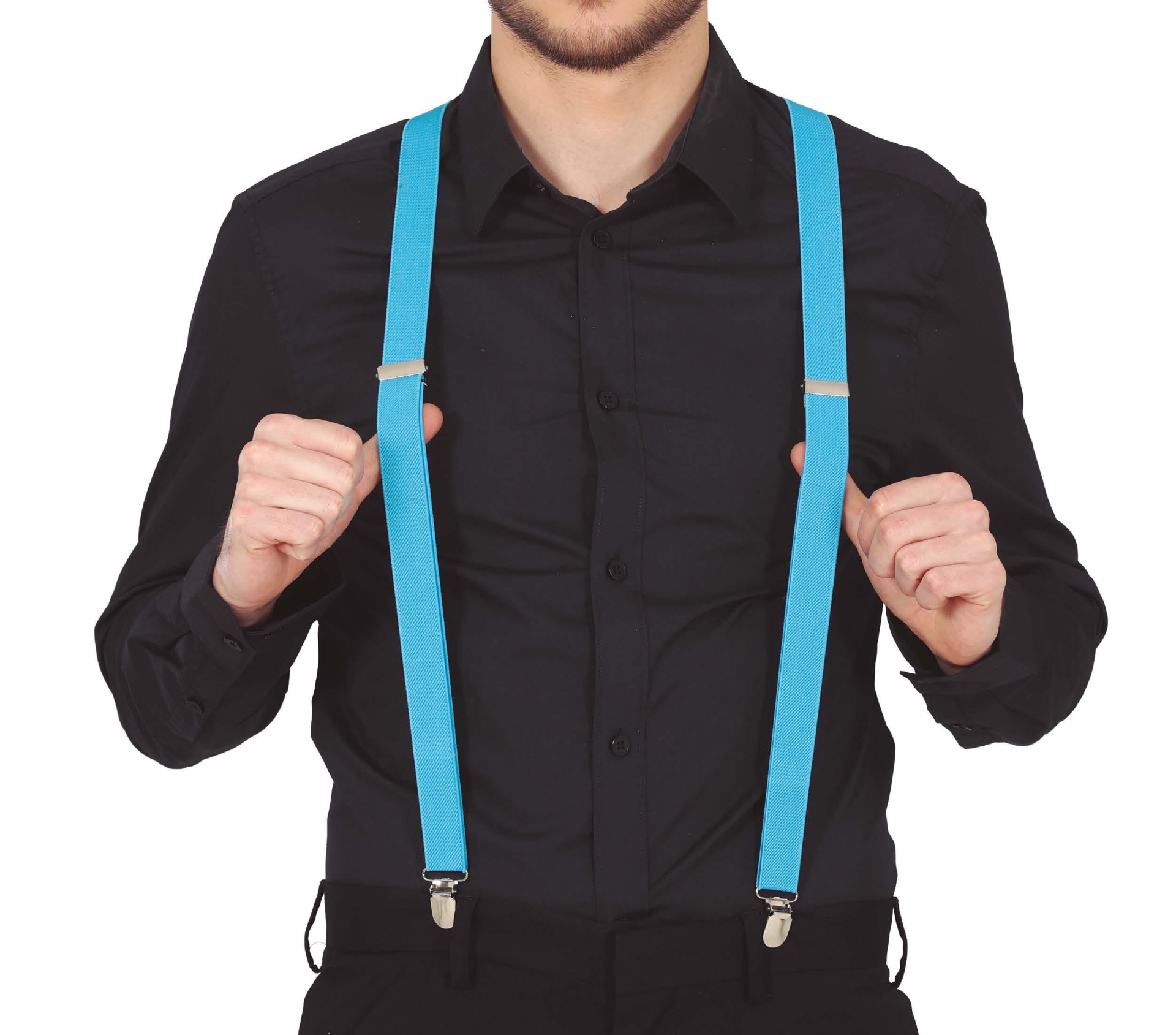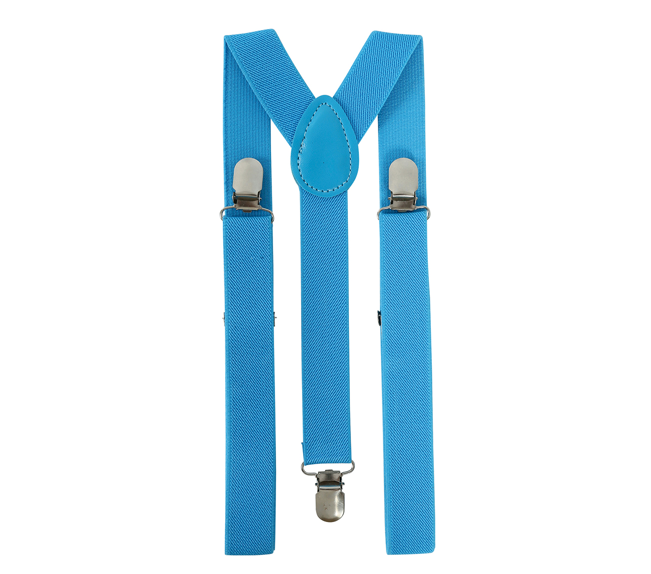 Svetlo modré traky (traky) vhodné ako univerzálny doplnok nielen ku kostýmu na tematickú párty, letnú oslavu alebo kostýmu tanečníka. Skvele sa hodí aj na bežné nosenie, alebo ako doplnok pre čašníkov a barmanov. Stačí doplniť štýlovou košeľou a je hotovo. Traky sa zapínajú pomocou cvočkov.