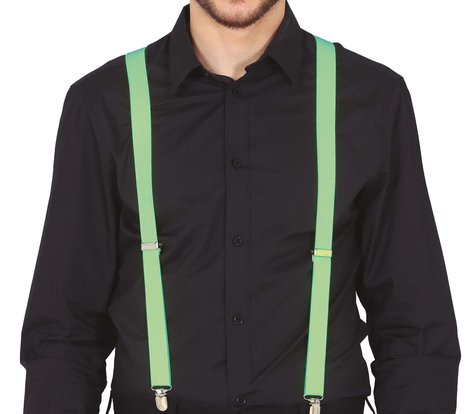 Svetlo zelené traky (traky) vhodné ako univerzálny doplnok nielen ku kostýmu na tematickú párty, letnú oslavu alebo kostýmu tanečníka. Skvele sa hodí aj na bežné nosenie, alebo ako doplnok pre čašníkov a barmanov. Stačí doplniť štýlovou košeľou a je hotovo. Traky sa zapínajú pomocou cvočkov.